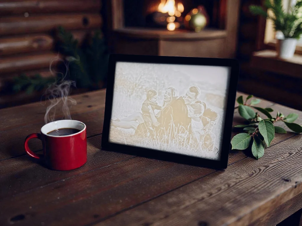 - Karácsonyi ajándék– különleges, melegfényű világító fotó díszdobozban.